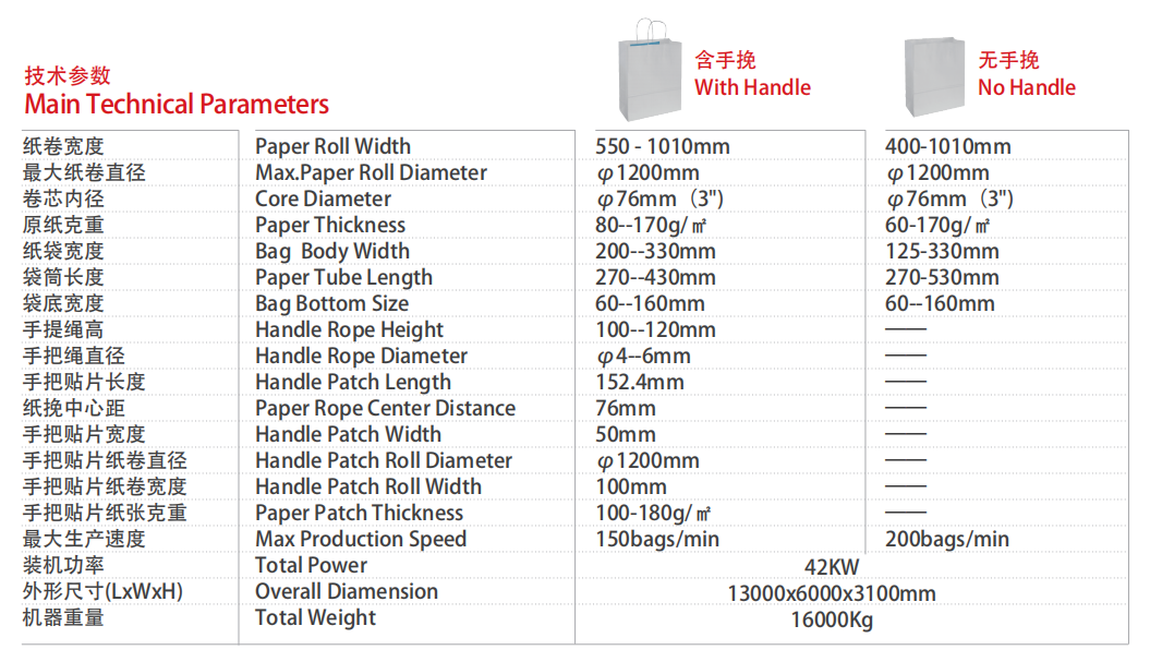 | 紙袋長(zhǎng)度 | 235-490mm | 235-540mm | 235-490mm | 235-490mm |